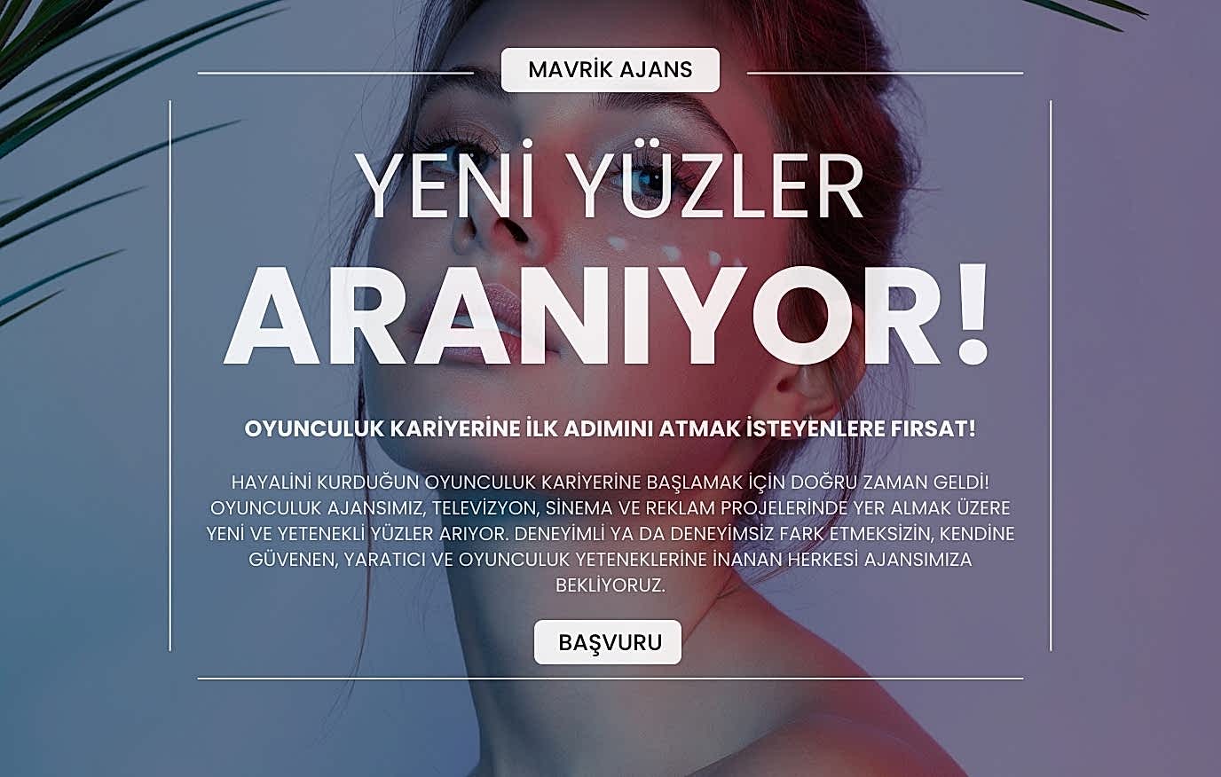 Yeni yetenekler aranıyor! Başvurarak katalogumuza katılın. Dizi, film, fotoğraf modeli, çocuk model ve mankenlik kategorilerinde hizmet veriyoruz. İstanbul Mavrik Oyunculuk Cast ile şansınızı deneyin!